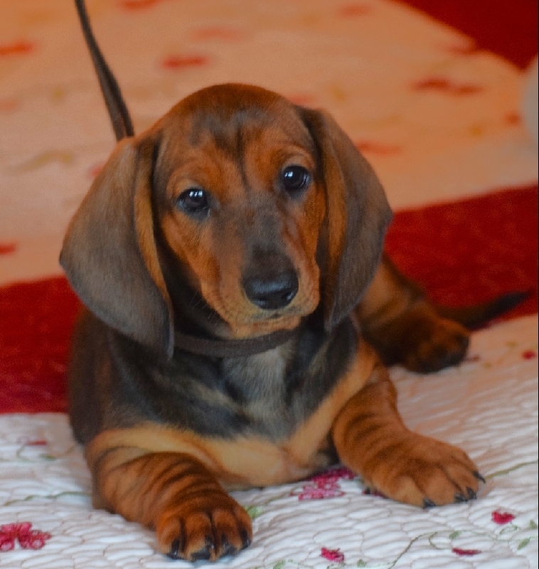 AKC Smooth Red Standard Dachshund Puppies, Pedigree is top show lines from US & Europe, Parents are both CH with CH bloodlines for pet or for show, 2 Females, 1 Male- 10 weeks old (360) 654-0625