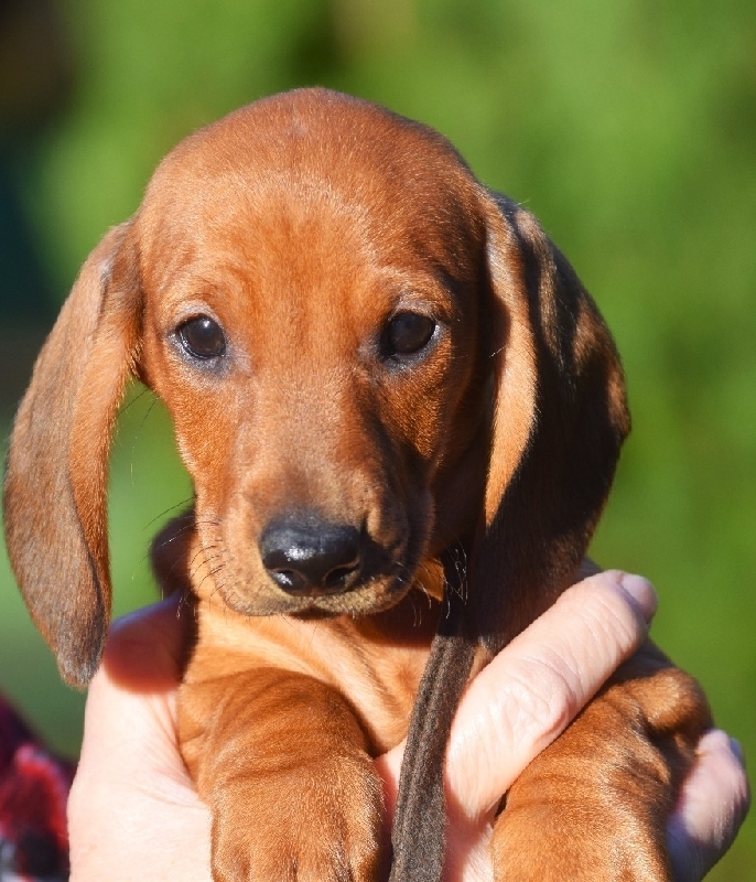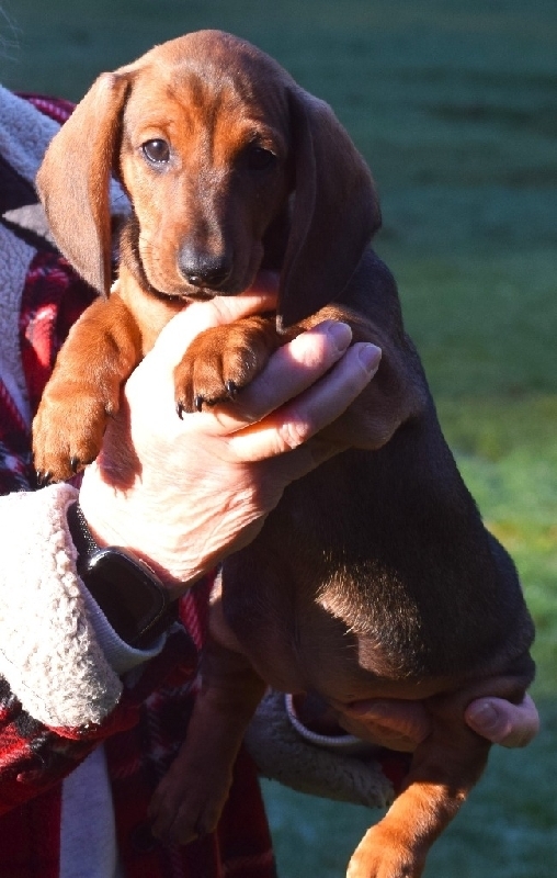 AKC Smooth Red Standard Dachshund Puppies, Pedigree is top show lines from US &Europe, Parents are both CH w/CH bloodlines for pet or for show, 2 F 1 M 10 weeks old